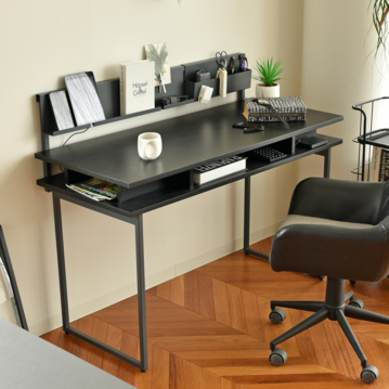 ワイルドな雰囲気が人気のインダストリアルは、「木目×黒のスチールの脚の家具」でそろえると統一感が出ていい感じに。
