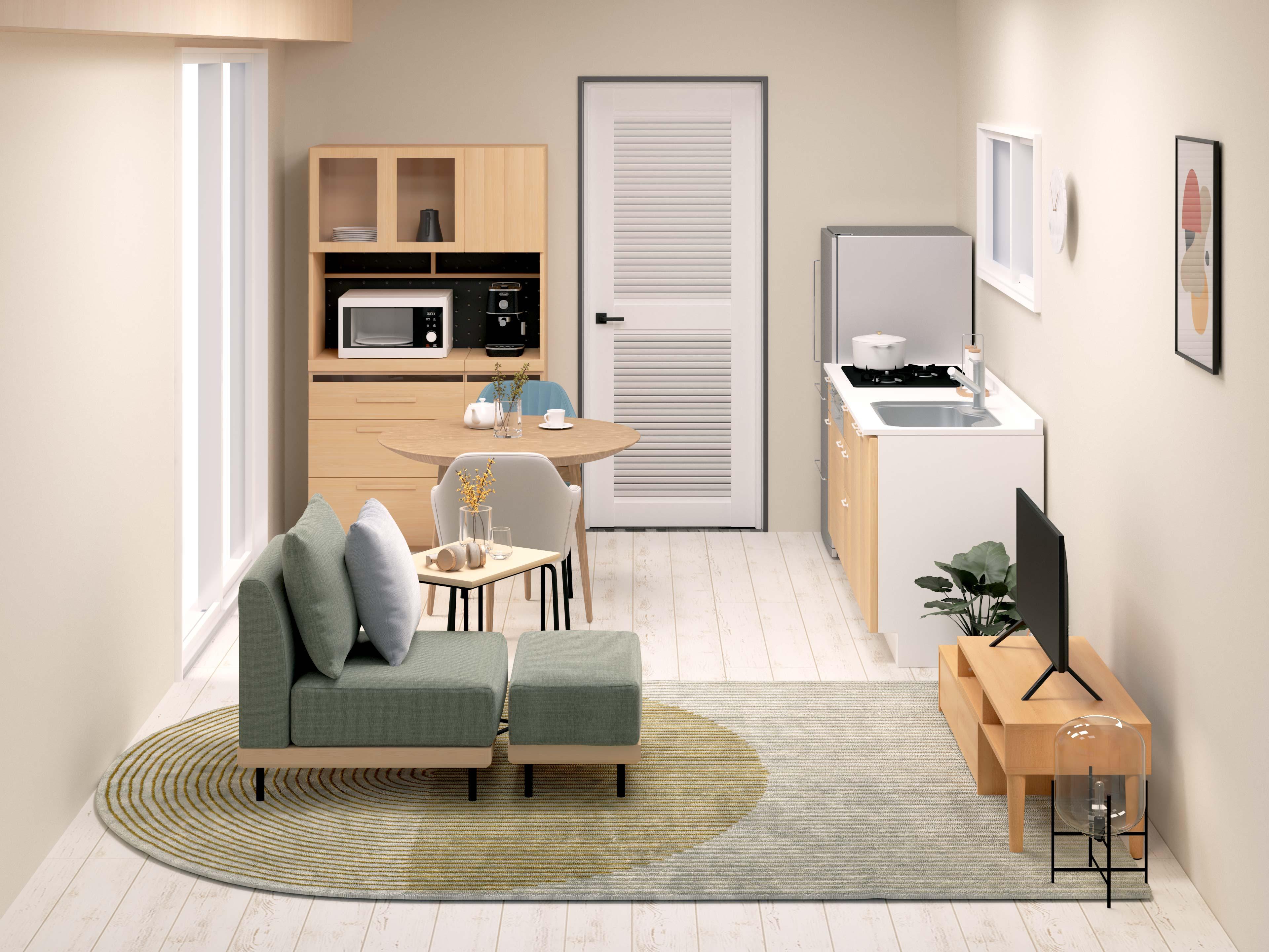 一人暮らしにちょうどよいコンパクトな家具から、キッチンに欠かせない冷蔵庫や電子レンジなどの家電まで400ブランド・2,000点のアイテムをそろえています。