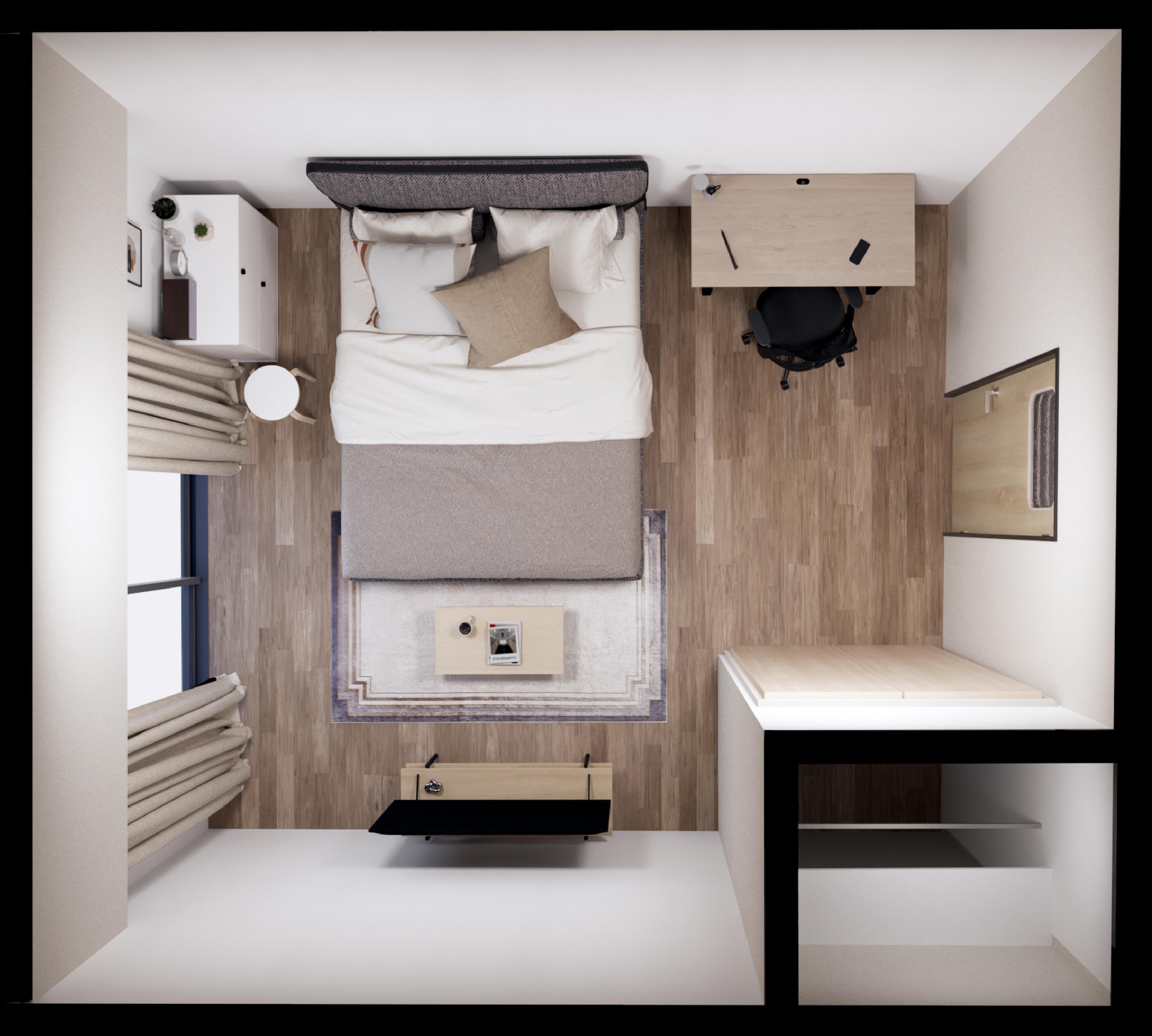 寝室の広さに限りがある場合やお部屋を狭く感じさせたくない場合に活用できるアイデアです。