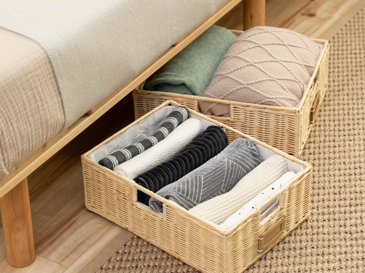 ベッド下は収納スペースとして活用できます。収納が少ない一人暮らしのお部屋にうれしいポイント。