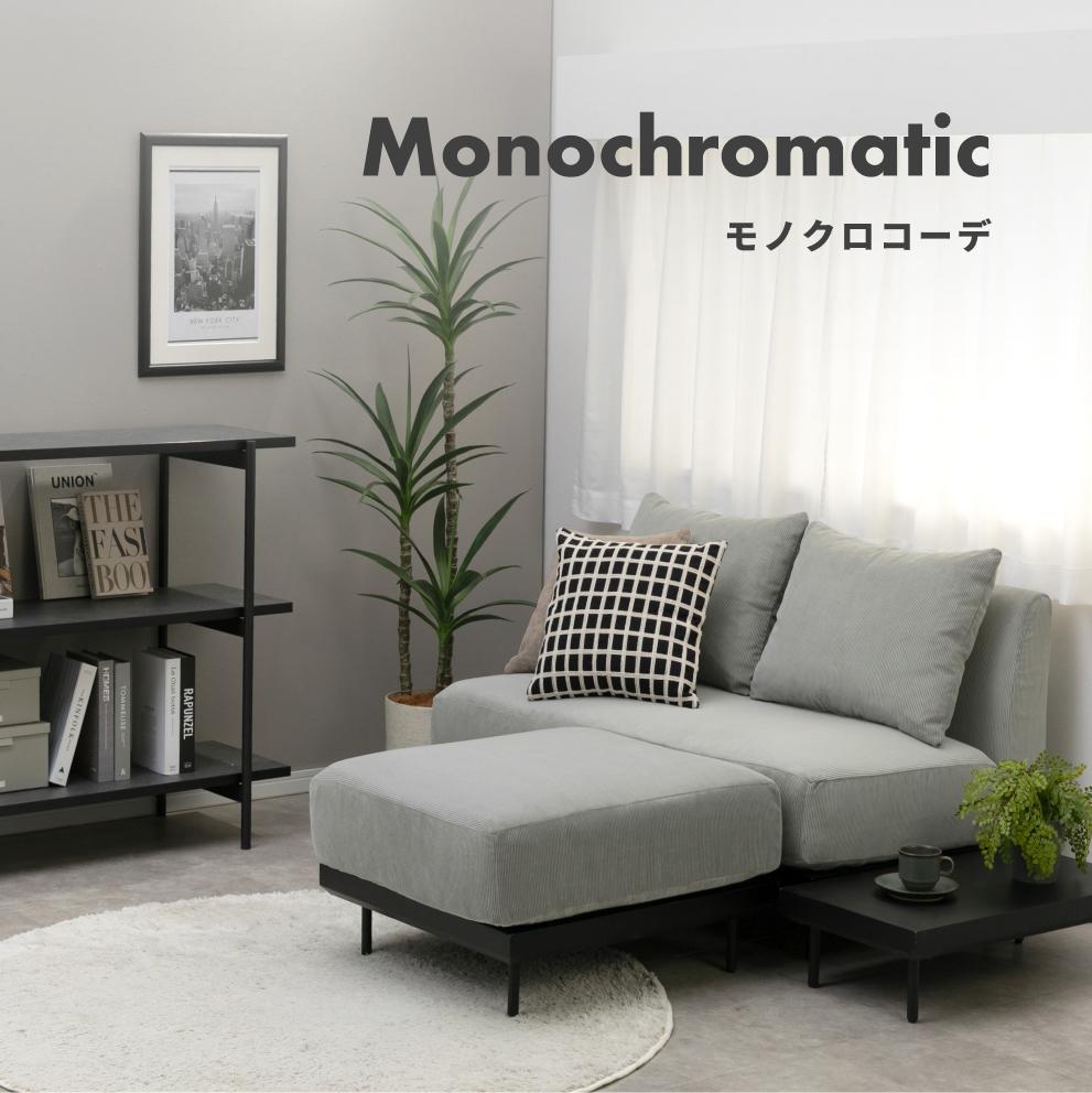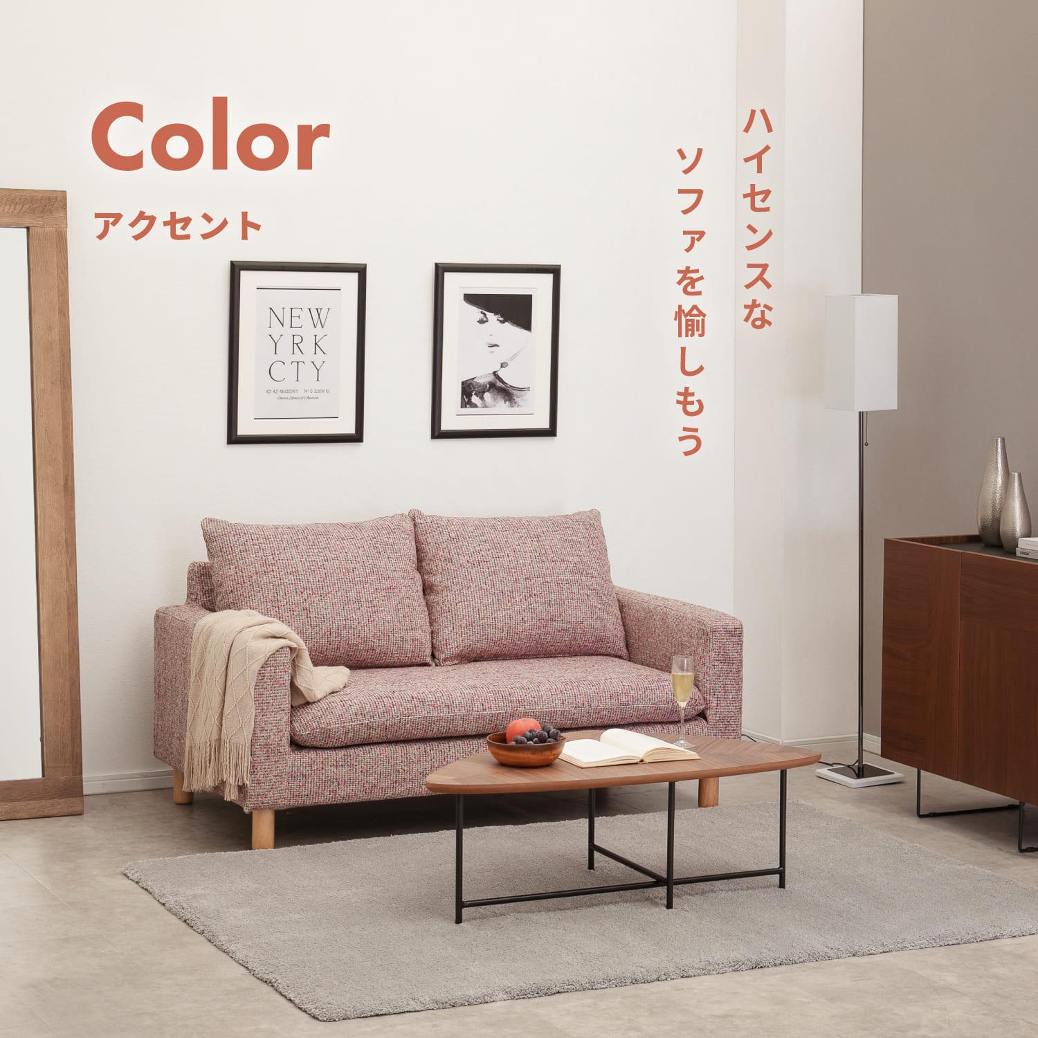 異なる色のソファアイテムを組み合わせる2色コーデ。
