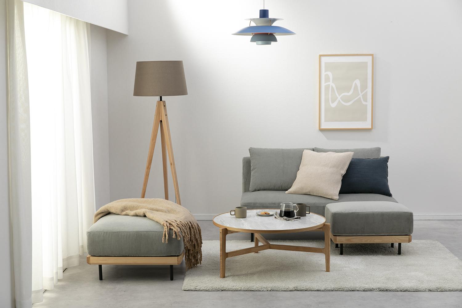 スペースやくつろぎ方に合わせて、自由にコーディネートできるCIRCLEソファ。