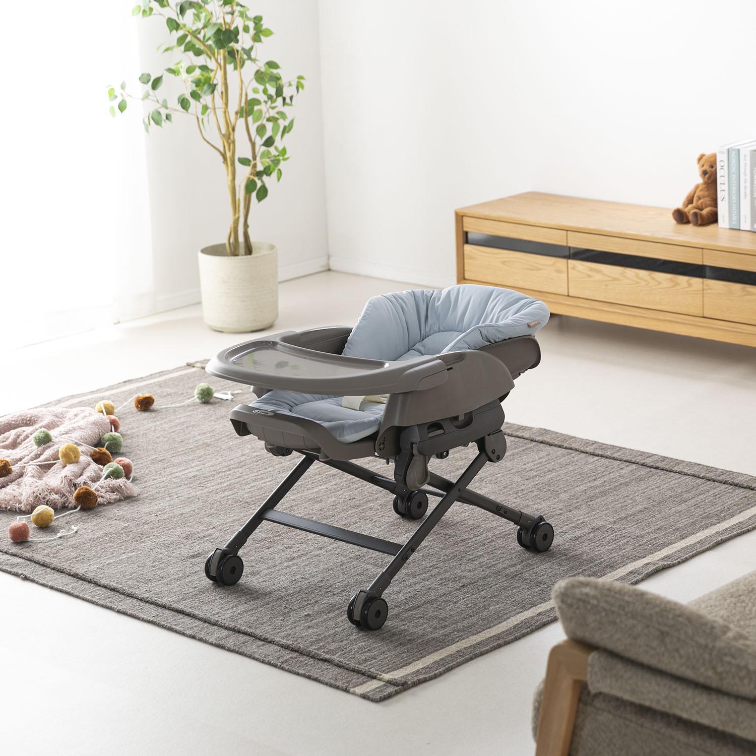 お食事の途中で眠ってしまっても、テーブルを取り外してフラットポジションに倒せば、お子さまを起こさずに眠る姿勢にチェンジできるのも嬉しいポイントです。