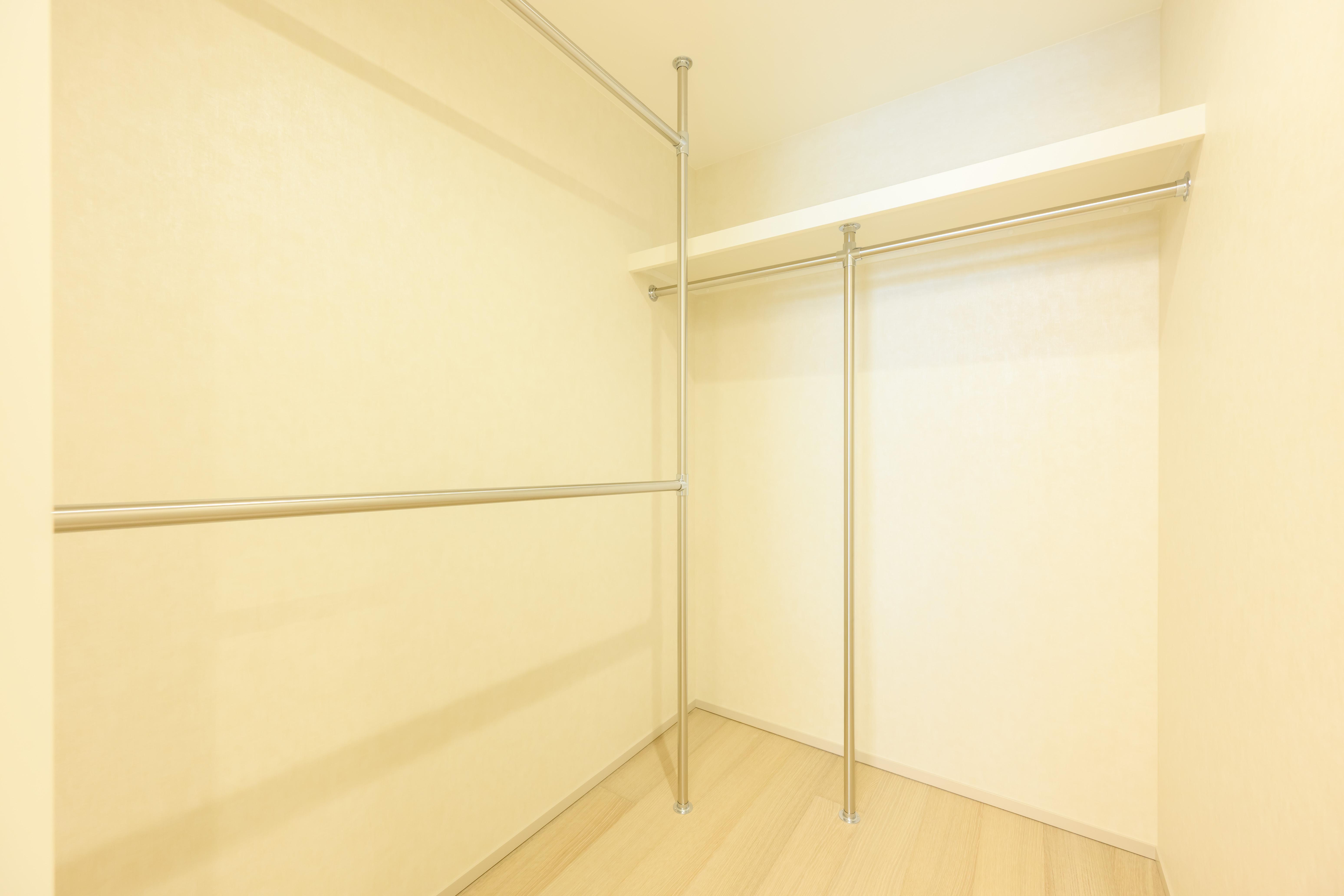 ツインベッドをゆったりと配置し、ホテルライクな非日常感を大切にしました。1.6帖のウォークインクローゼットがあるので、服や小物もすっきり片づけられ、毎日の身支度がちょっと楽しくなります。