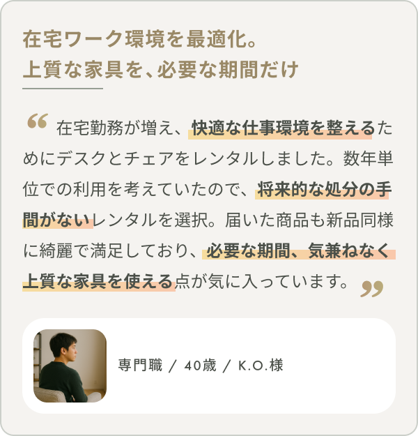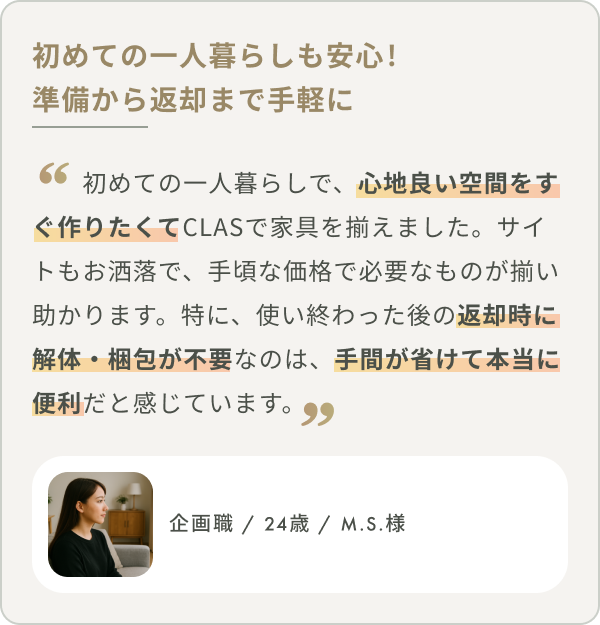 いらなくなったら返却するだけ、お部屋もすっきり