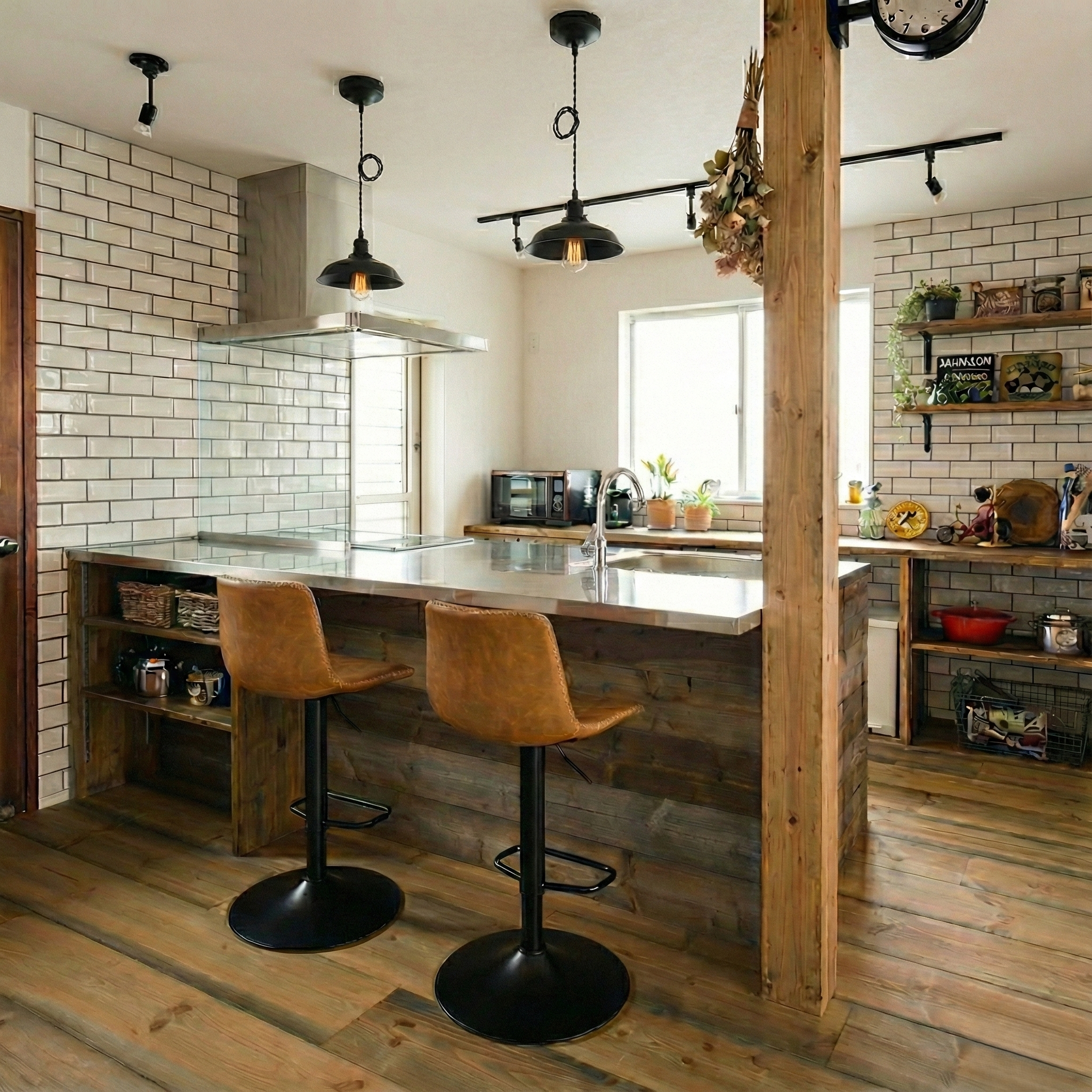 特にウッドを生かしたキッチンと合わせれば、アメリカンカントリースタイルを演出できます。