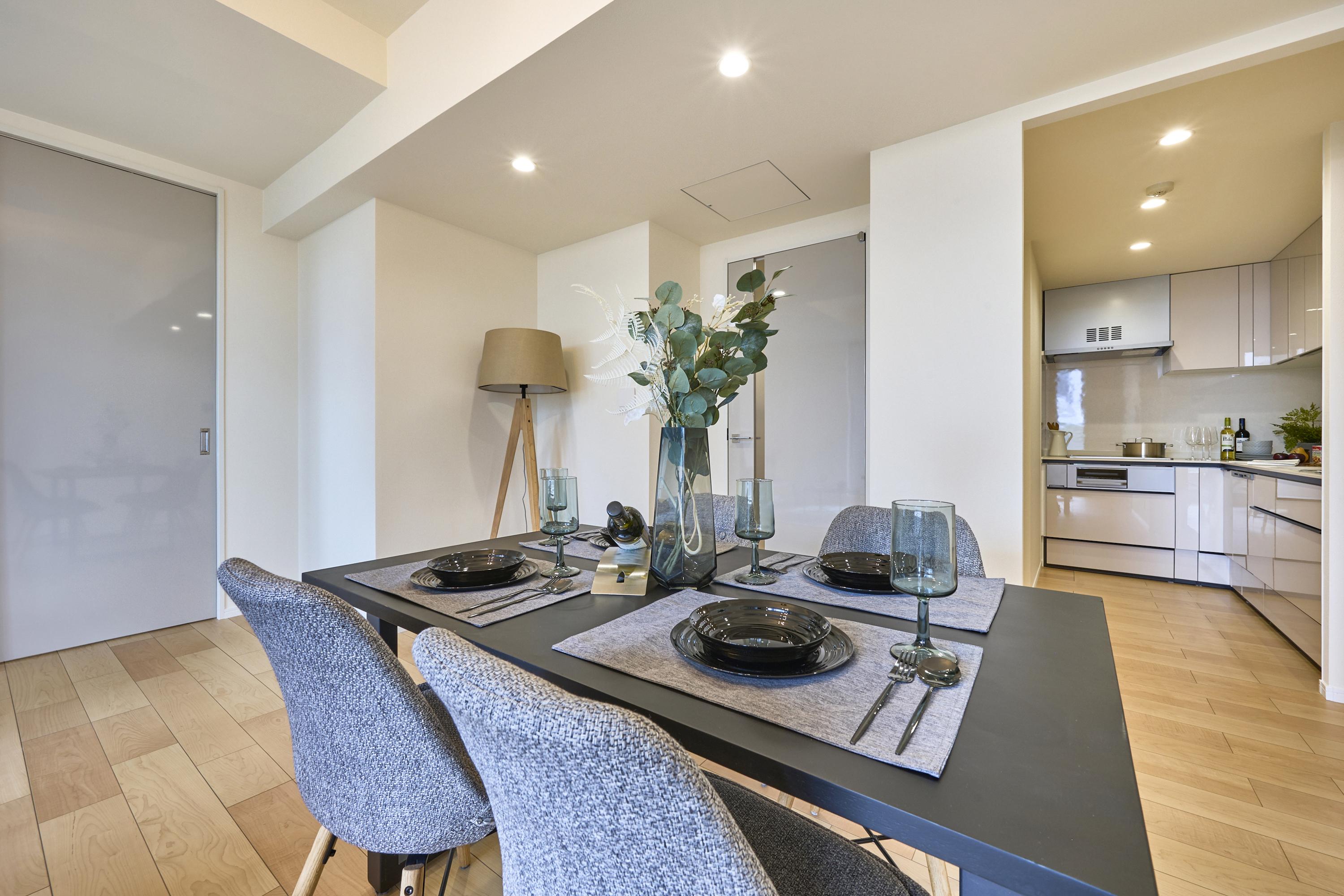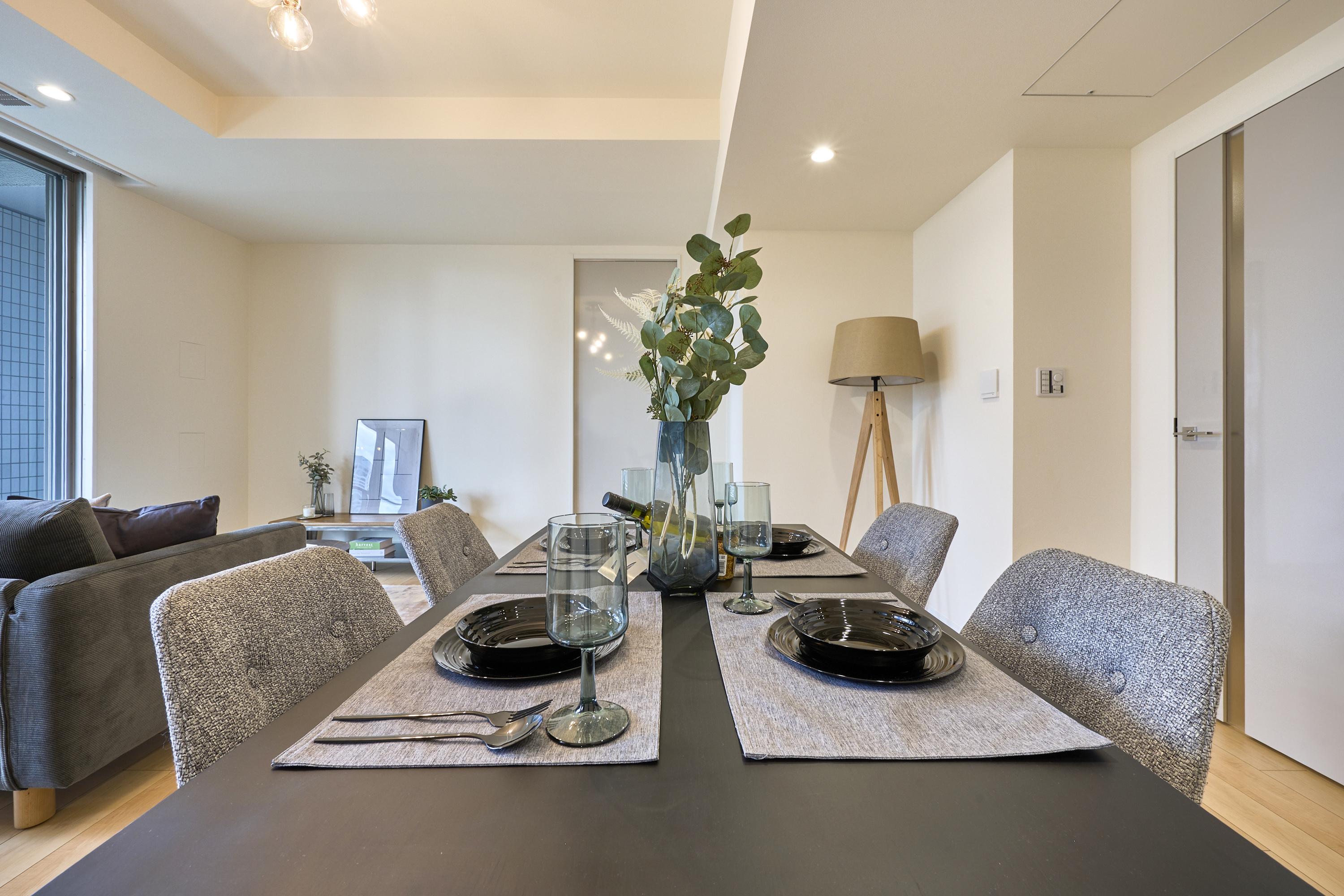 主要駅から徒歩圏内という場所柄、友人を招いてのホームパーティも増えるはず。そんな時、この落ち着いたダイニングが会話をより知的なものへ弾ませてくれるでしょう。