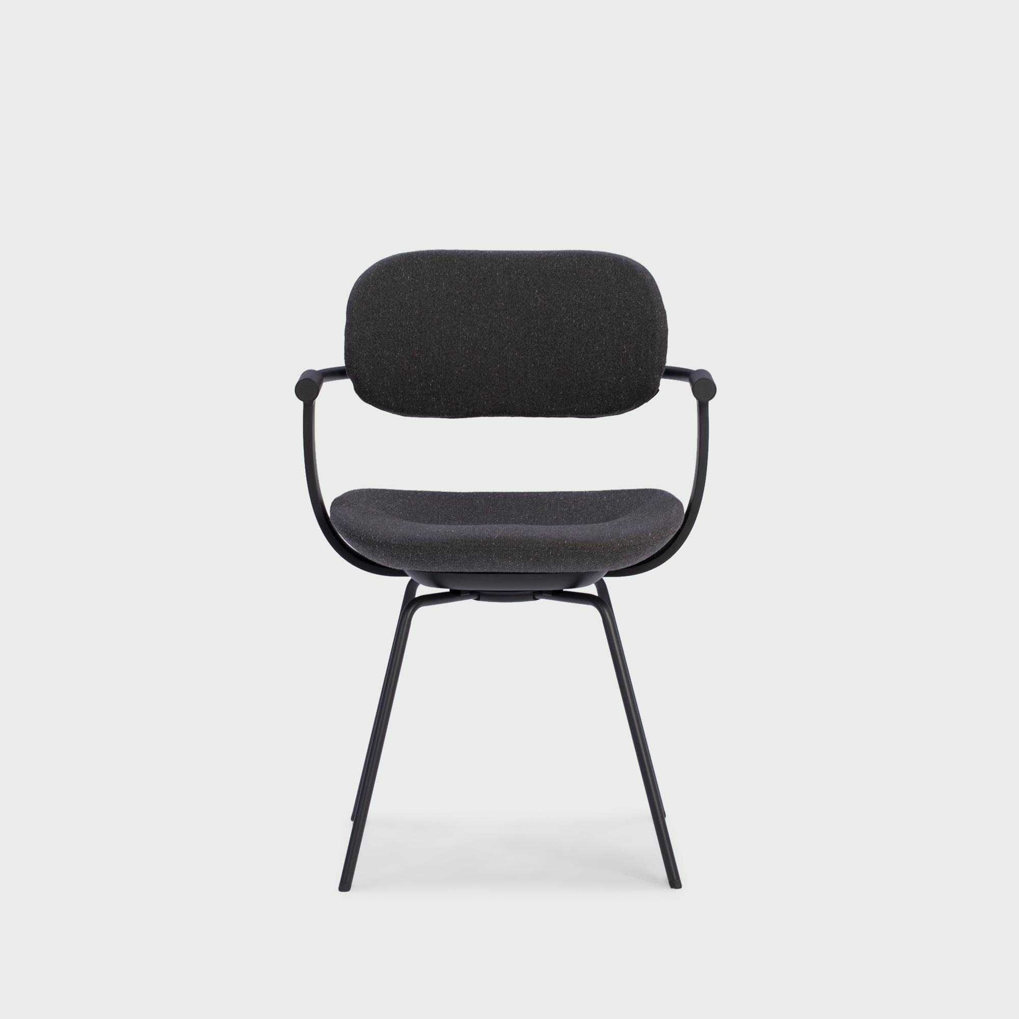 チャコールグレーの座面と特徴的なスチールの脚は、控えめながらセンスを感じさせるデザインになっています。