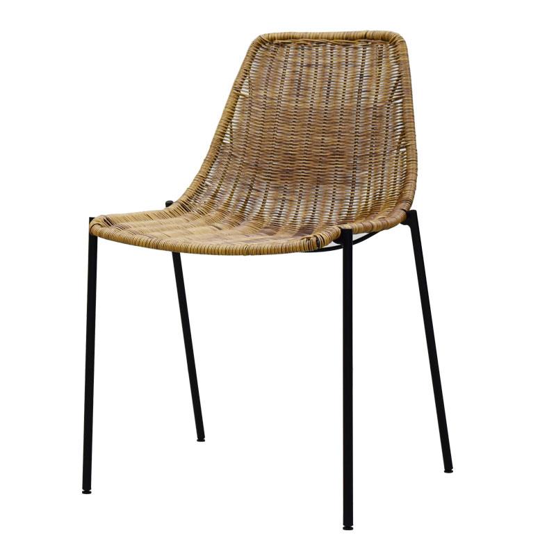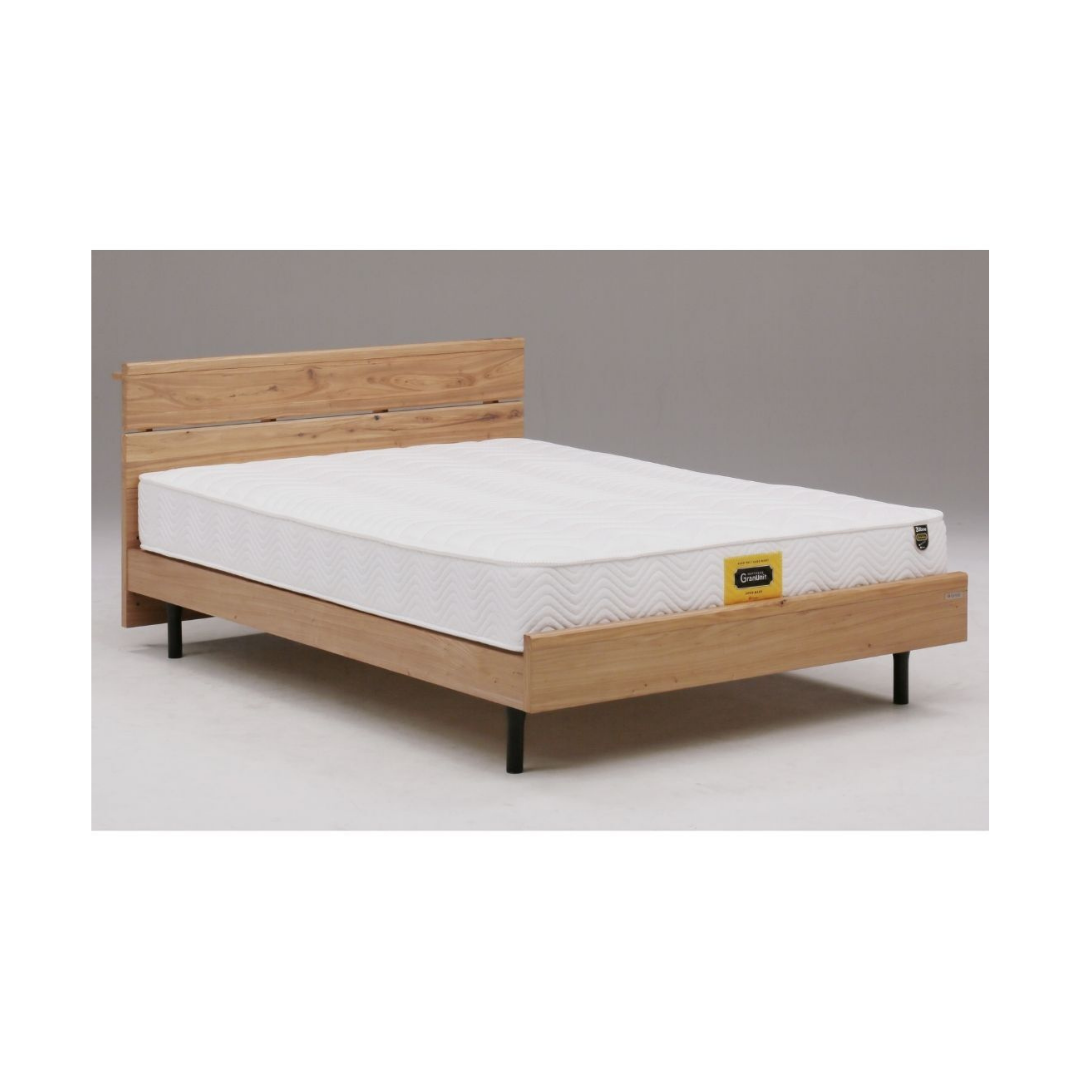 無垢木を使用したベッドフレームにラタン風の椅子。