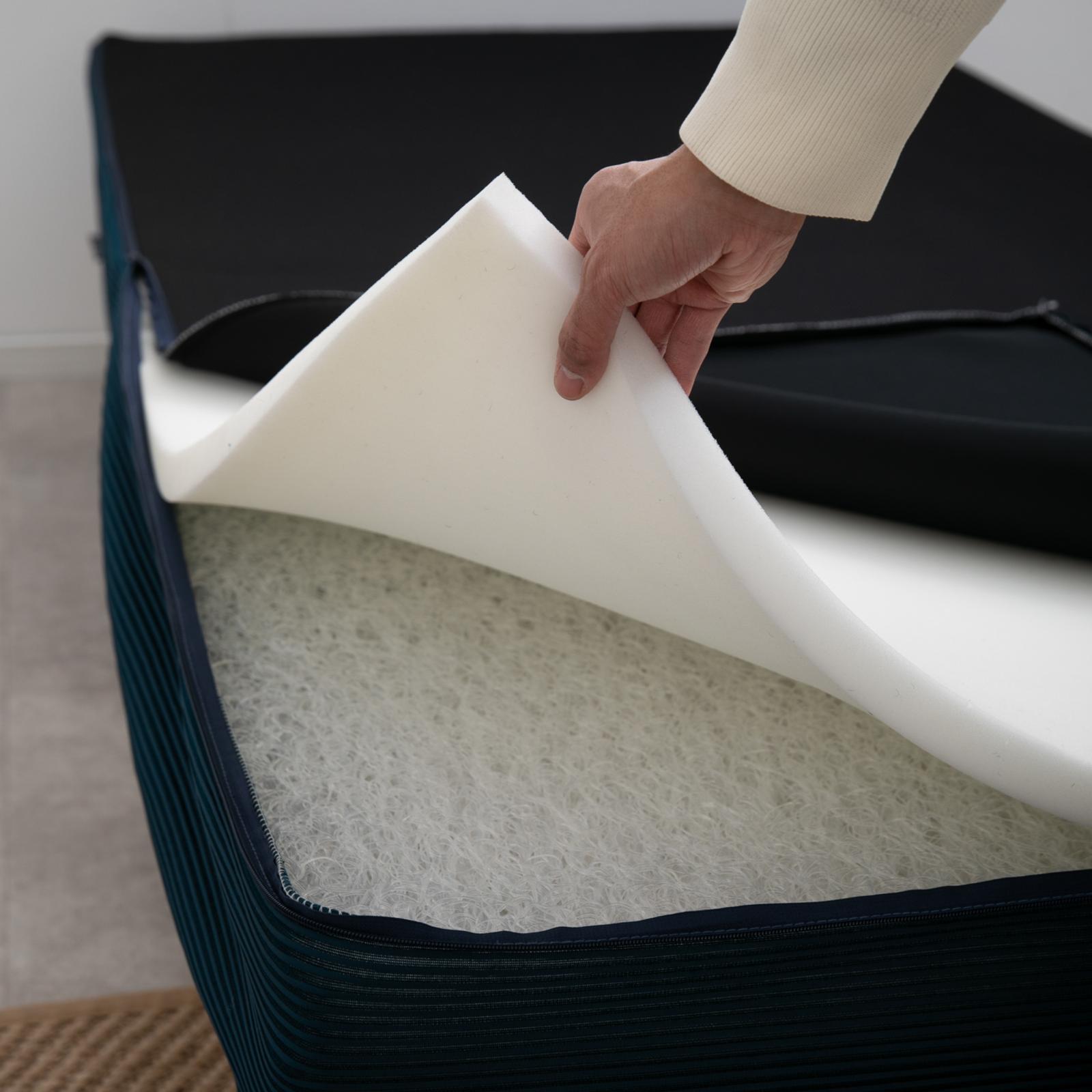 本体の上にウレタンを敷き、カバーでまとめることで、環境や廃棄の問題をクリアしました。