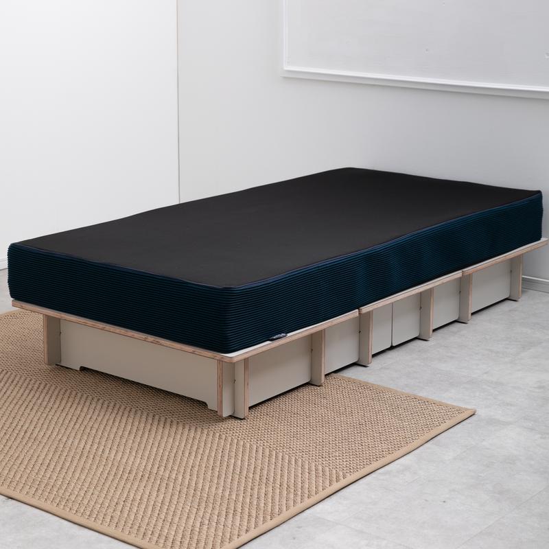 3Dファイバーは適度な硬さと柔軟性を兼ね備え、通気性にも優れた仕様で快適な寝心地。本体は3つに分かれるので、お部屋の中も運びやすくなっています。