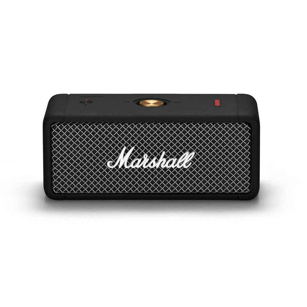 マーシャルのスピーカーは、黒とブラウンでまとめた他のインテリアにも馴染むデザイン。