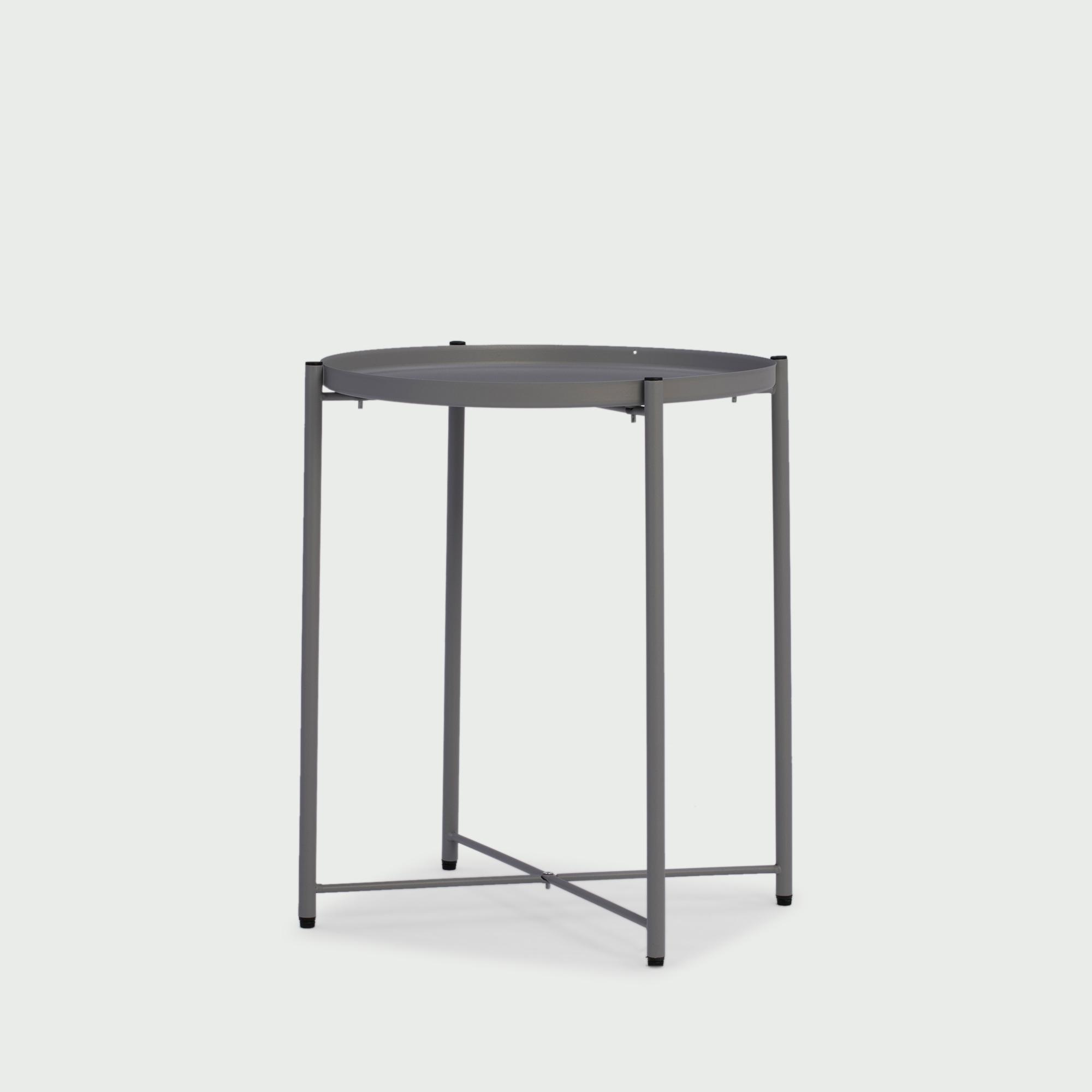 トレーの丸い形、シンプルなデザインが可愛らしいサイドテーブルは、グレーの色味がお部屋のナチュラルカラーに馴染みながら、程よいアクセントに。