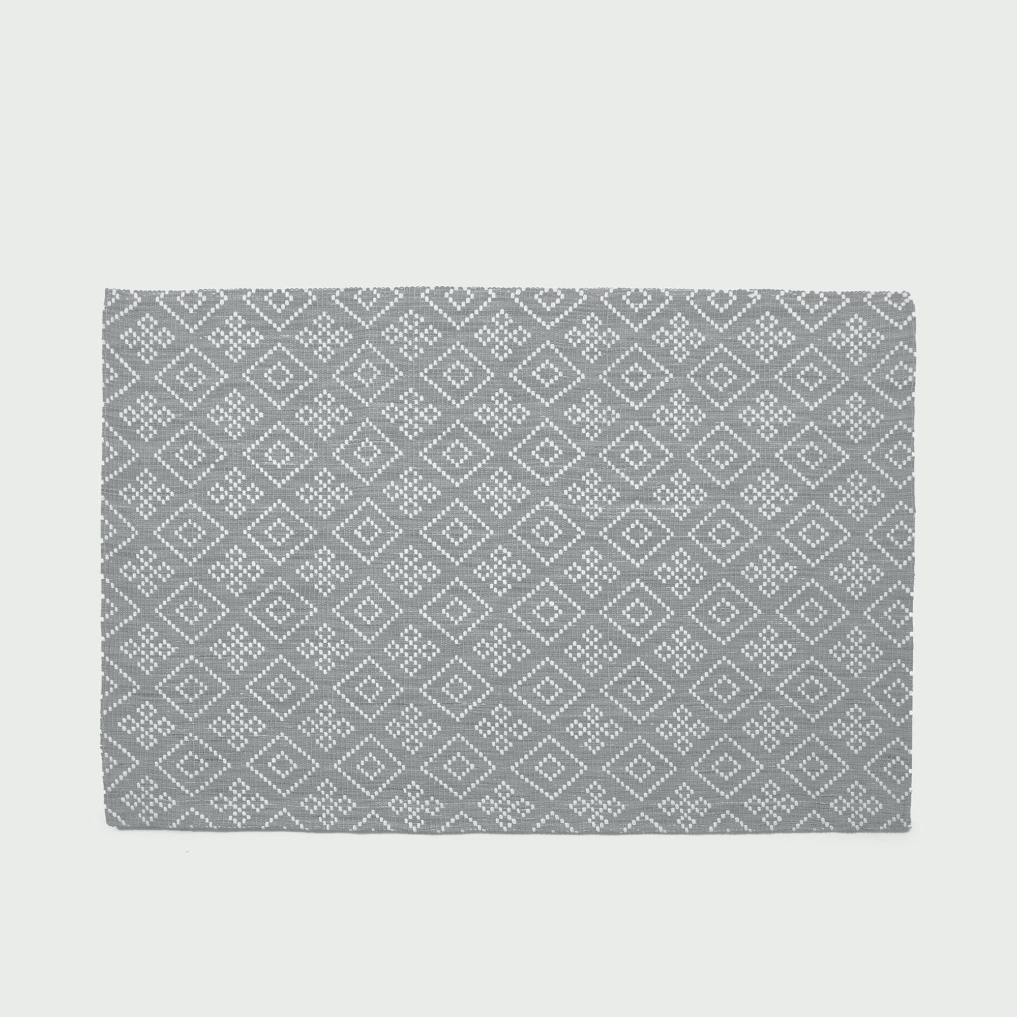 モノトーン配色で織られたラグは、ブラウン基調のインテリアにもすっと馴染みます。