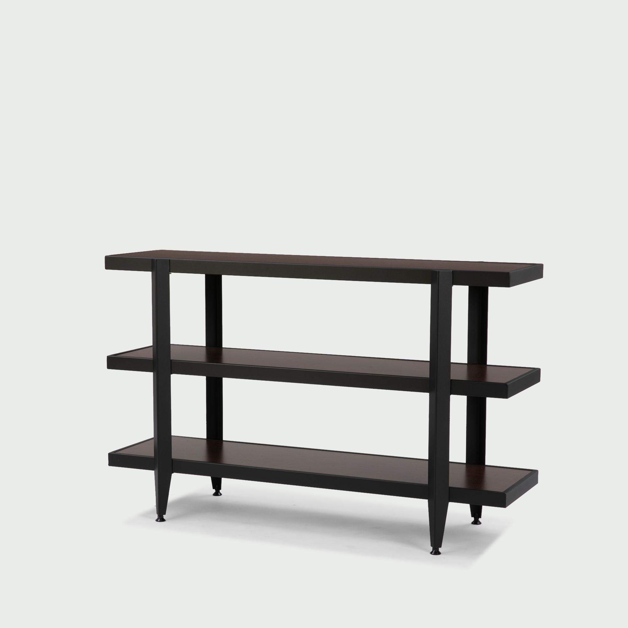 ウォールナットのブラウンと、ブラックの差し色が大人なワークスペースを演出。